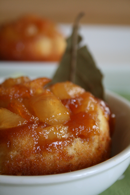 Over a medium flame, heat oil in a small saucepan. Add brown sugar and honey; cook over low heat for about 5 minutes until mixture no longer separates. Divide mixture evenly between prepared ramekins. Cut each pear into 12 wedges and place 4 wedges in the bottom of each dish; set aside.