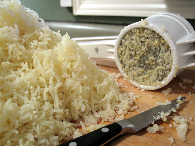 If you’re looking for something unusual, try a ricer. A ricer looks sort of like an overgrown garlic press. It has a large cup that holds boiled potato pieces. Once you’ve filled the cup, press the handles together causing a flat metal plate down into the cup. The potatoes are forced out through hundreds of small holes in the cup. The result is fluffy little bits of potato that look suspiciously like rice—hence the name “ricer.” Pour some of the sauce from your main dish meat or chicken over the “riced” potatoes and, voilá, you’ve got a tasty new side dish.