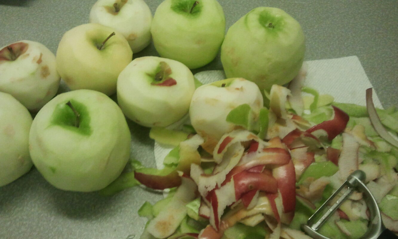 | I’m using Granny Smith, Golden Delicious and Macintosh apples and there’s my favorite peeler in the corner–Oxo! |
