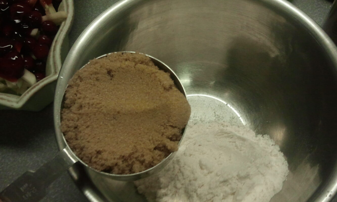 In a bowl stir together flour and brown sugar until no lumps remain.