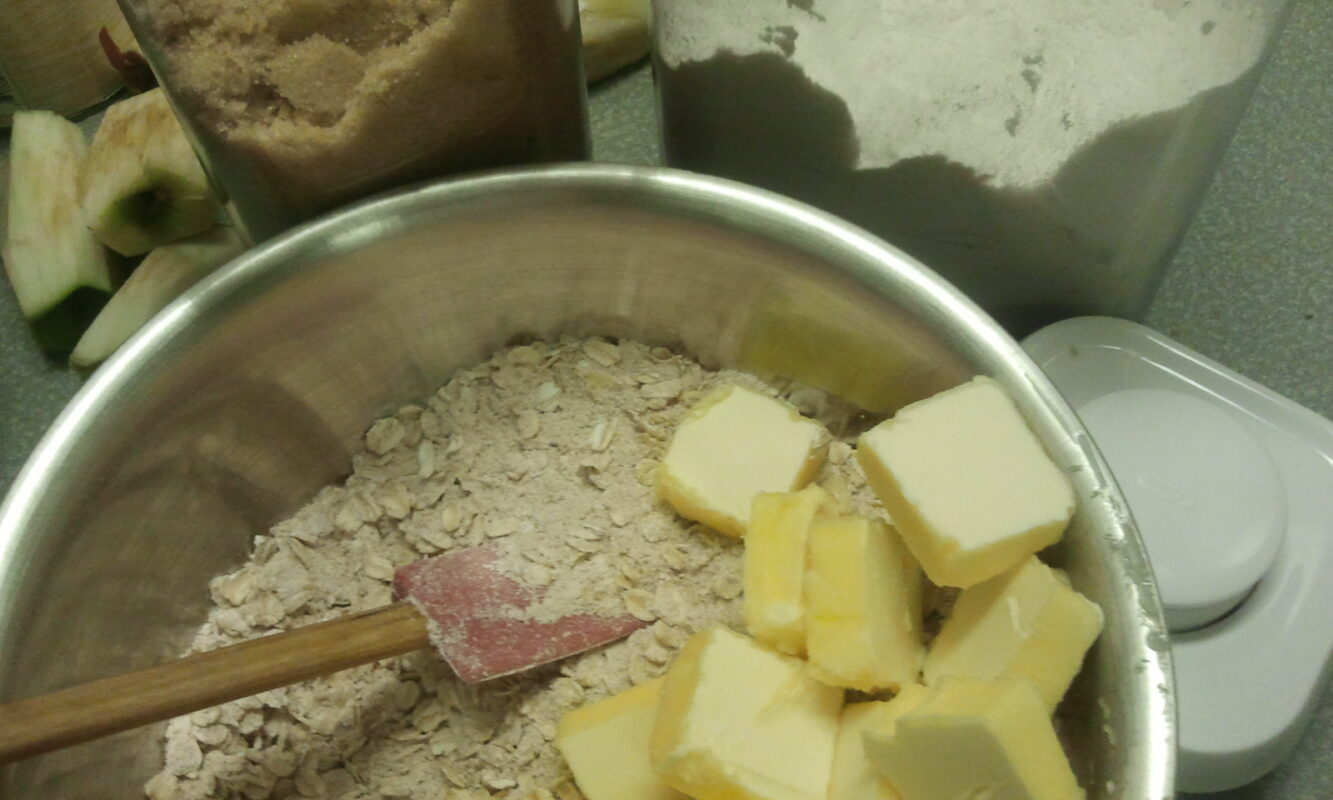 | margarine cut into pieces and added to the bowl and my neat and tidy Oxo storange containers |