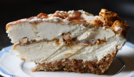 Spoon remaining ice cream over the brittle and smooth the top. Drizzle the remaining peanut butter over and top with caramel. Sprinkle edge of pie with 1/2 cup brittle, chopped fine. Freeze 4 hours before serving.
