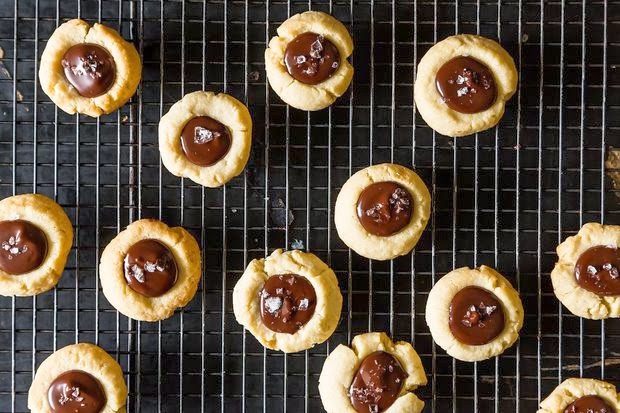 the thumbprints with the chocolate, and then sprinkle with sea salt. Allow