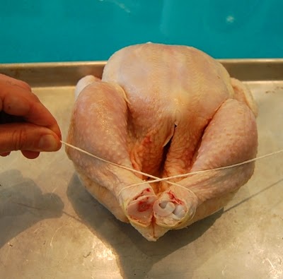 while keeping them close allows them to bake more evenly. Trussing a chicken is