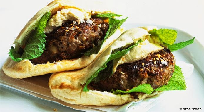 No barbecue is complete without burgers. In a bun, layered with onions and pickles,