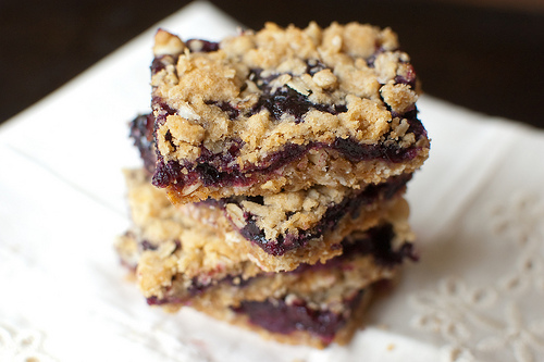 sprinkle the reserved dough on top of the jam.