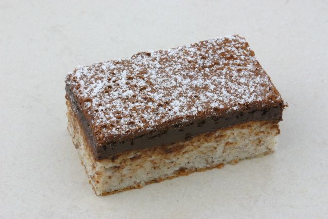 Pour chocolate filling carefully over hazelnut layer. Bake for 12 to 14 minutes OR until edges of filling puff. Center will be slightly soft. Cool at least 15 minutes before removing from pan. May be served warm or at room temperature.