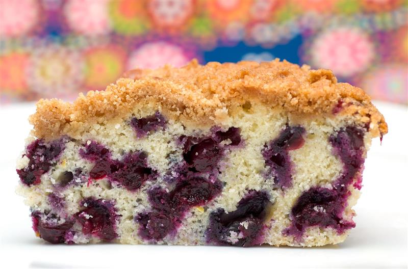 This works with a variety of fruit but blueberries look very pretty suspended in cake batter!