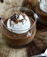 Next, temper the eggs by adding a little of the melted chocolate. Then pour the eggs back into the bowl of melted chocolate and stir to combine. Fold in three-quarters of the whipped cream (refrigerate the remaining whipped cream for serving). Spoon the mousse into serving glasses or bowls and refrigerate for at least 1 hour.