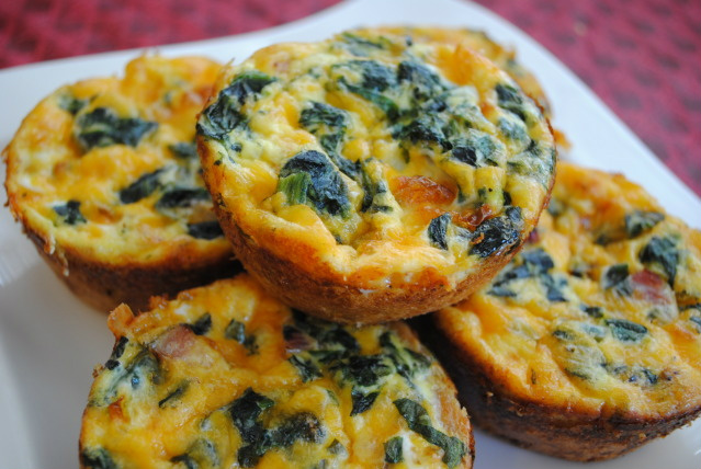 Coat 10-12 cups of a muffin pan with cooking spray. Divide the spinach mixture among the 8 cups (they will be very full).