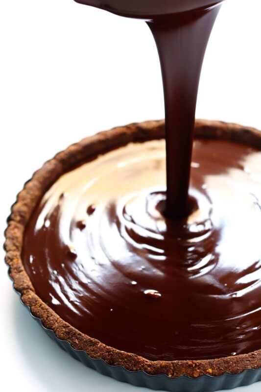 Pour chocolate filling into crust; smooth top. Refrigerate tart until filling is firm, at least 3 hours. Top with fruit if desired.Â