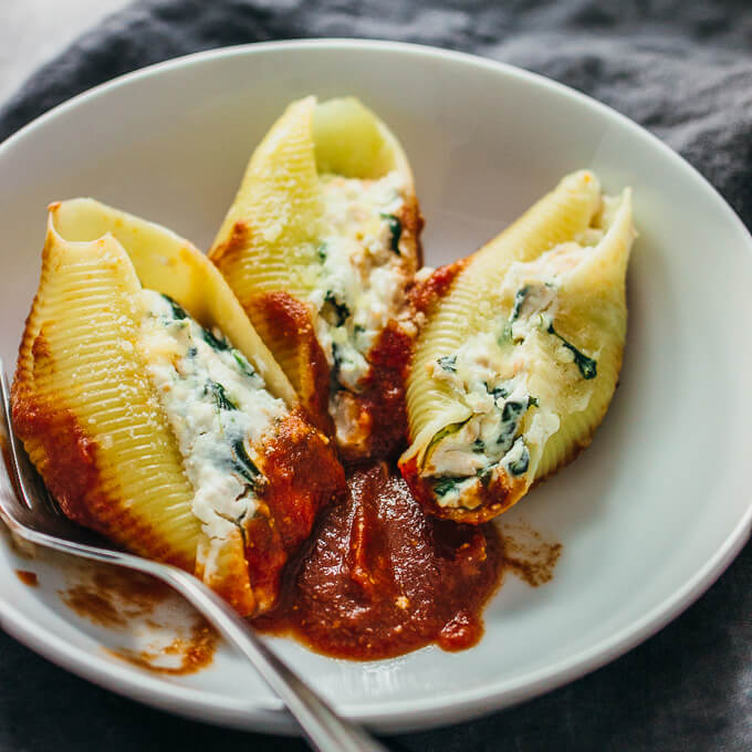 shell with 1 ½ to 2 tablespoons spinach mixture. Place shells, filling side up,
