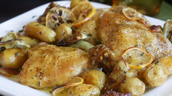 pepper. Bake until the skin is golden and the juices are clear, 45 minutes to 1