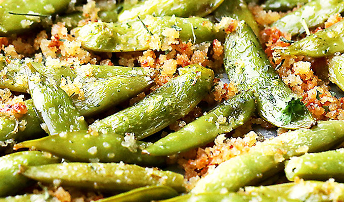 Looking for great crunch and lots of flavor? Look no further than snap peas. (Bet you thought I was going to say potato chips!) Snap peas give salads and side dishes a boost of flavor and texture, not to mention beautiful color. Although they are available all year, snap peas are now at peak flavor and perfect for adding to summer salads. Snap peas are different than snow peas as the pods—or actual peas—are round. They are similar in the fact that both are completely edible. Sometimes called sugar snap peas, they are also sweeter than snow peas.