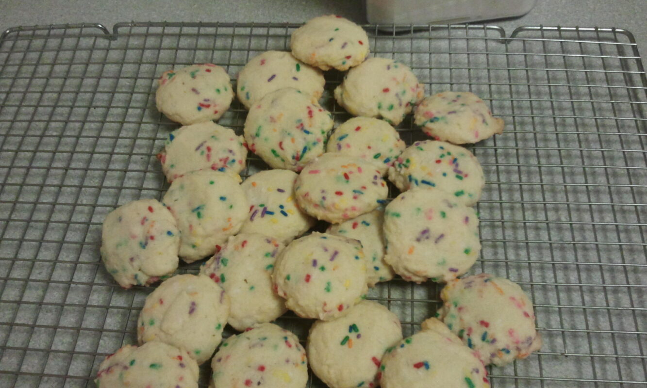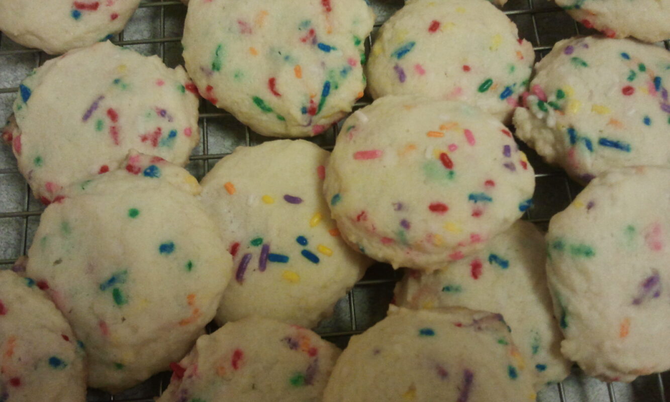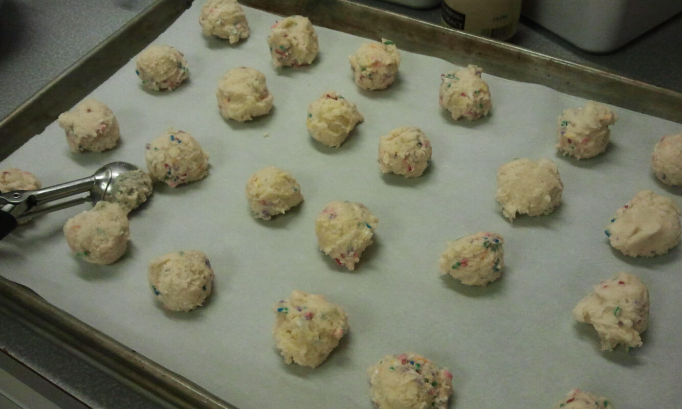 One of our favorite kiddie cookies are a simple sugar cookie with colored sprinkles or jimmies added. They’re easy to scoop using one of my favorite kitchen gadgets—an Oxo cookie scoop. Using a scoop keeps all the cookies nice and even. It also makes for pleasingly round cookies, even when they’re done by a six-year-old. You may think kitchen gadgets are my life and I must have every new one that comes to market. But no, I’ve got limited space in my kitchen so only those that I can’t live without make it home with me. Cookie scoops are on the short list. Once you get used to turning out beautiful, round, evenly-sized cookies there’s no going back. We bake lots of cookies in this house so my Oxo cookie scoops get a place right in front of the gadget drawer. They come in three sizes—I use them for everything from cookies (duh!) to truffles to portioning cupcake batter to serving ice cream and sorbet. They will go right through frozen foods without breaking.