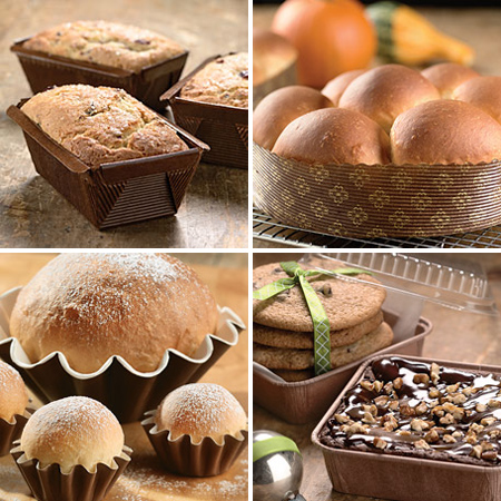 In a loaf or tube pan you are not limited to a cake made from batter. Bake a Babka by twisting a small roll of kokosh cake or slicing it into buns and laying the buns sliced-side up in the pan. You can bake challah in the loaf pans as well. The shallow squares and loaf styles are perfect for brownies, Rice Krispy treats or bar cookies. The deep styles look very attractive when you bake a simple one-bowl cake. Bake individual cinnamon or kokosh buns in our tulip cups or new ramekins. You can choose a color to compliment the rest of your package.
