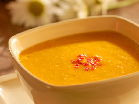 Gazpacho is a cold soup made of pureed raw tomatoes.Traditionally made of red tomatoes, this light colored version will enhance any