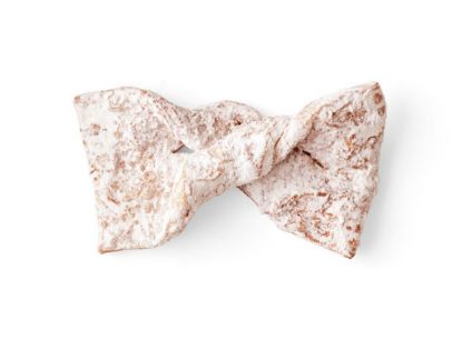 shaped into thin twisted ribbons, deep-fried and sprinkled with powdered
