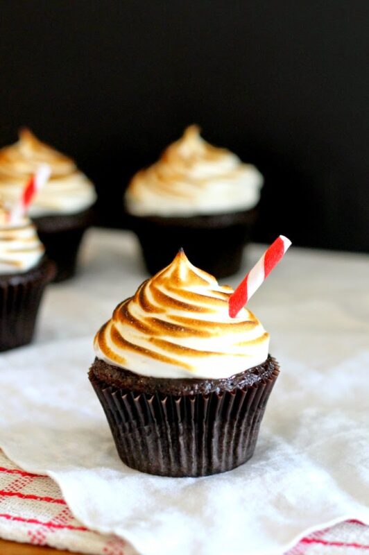 spread marshmallow frosting onto tops of cupcakes. Place frosted cupcakes on a