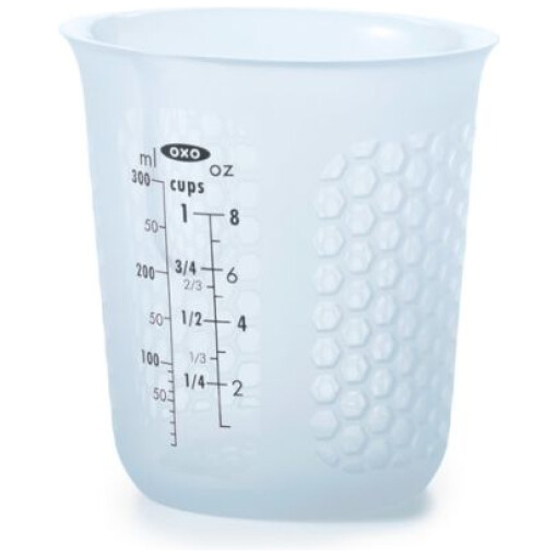 With a flexible body and spout, the Squeeze & Pour Silicone Measuring Cup makes it easy to mix, measure, microwave and pour all from the same Measuring Cup. The specialized honeycomb pattern protects your hands by dissipating heat and a simple squeeze forms a precise pour spout.