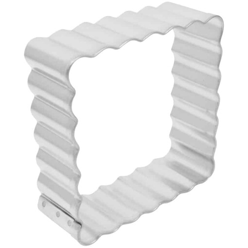 Tinplated Steel Fluted Square 2.75″ Cookie Cutter. Hand wash and dry thoroughly before storing.