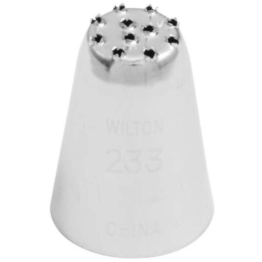 Pipe grass, hair or multiple rows of thin ropes using this multi-opening decorating tip. Do not use with couplers; tip will fit any size decorating bag. Top-rack dishwasher safe; however for best results, hand wash in warm, soapy water before first and after each use; rinse and dry thoroughly.
