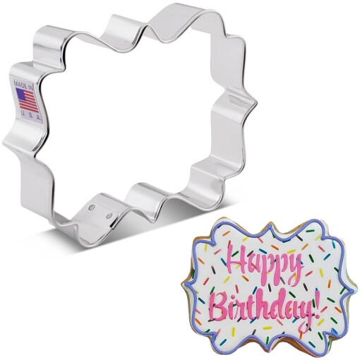 No matter how you frame it, the 3 3/8″ x 4″ Square Plaque Cookie Cutter is quite versatile and perfect for many occasions: wedding, birthday, anniversary, Valentine’s Day, you name it! Designed by the talented cookie artist LilaLoa.