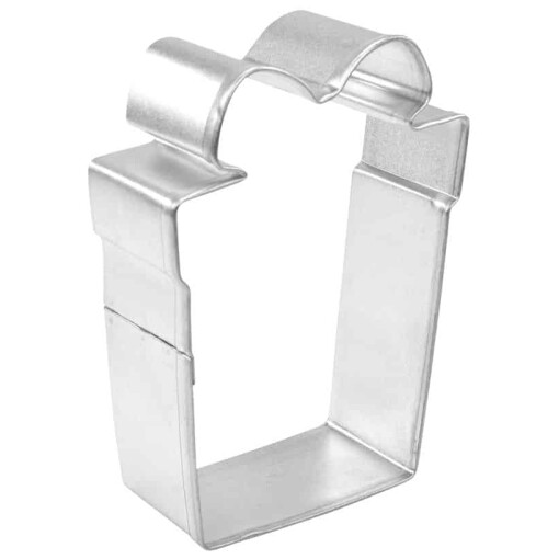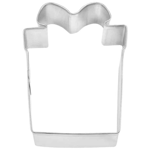 Tinplated Steel Present 3.5″ Cookie Cutter. Hand wash and dry thoroughly before storing.
