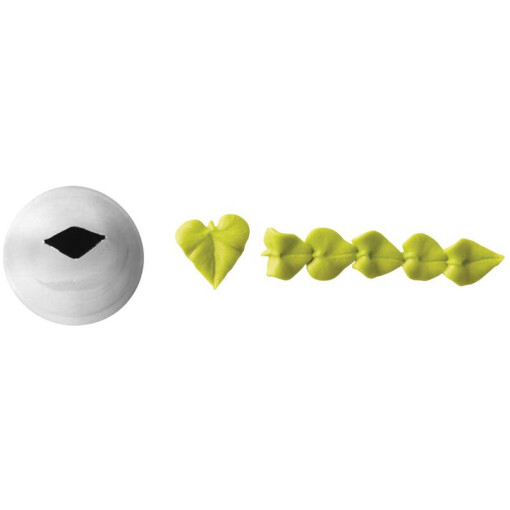 Making fine foliage to create realistic flowers on your cakes, cupcakes and cookies is easy with this tip. You can pipe leaves and other stunning shapes. It’s a great tool for any decorator and it works with standard piping bags and couplers. Its stainless steel tip is engraved with its number for easy identification and it will hold up to years of use. Top-rack dishwasher safe.