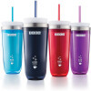 Includes 1 stainless steel inner core, 1 protective sleeve, 1 lid, and 1 colored straw. Available a choice of 4 sophisticated colors. BPA and phthalate free. Easy to clean with mild soap and water. Do not wash in the dishwasher.