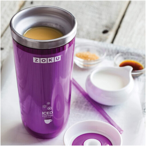 The Zoku Iced Coffee Maker doesn’t require ice, which means your favorite flavors won’t get diluted. Make a single serving of iced coffee in vanilla, mocha, caramel, hazelnut, or whatever flavor you’d like. Spice it up with soy or almond milk, cinnamon, or sugar and you’ll be feeling cooler in no time. This spill-resistant cup comes with a matching straw, making it easy to drink on-the-go.