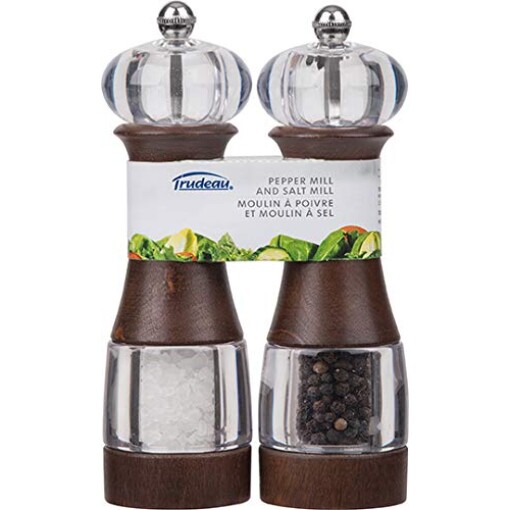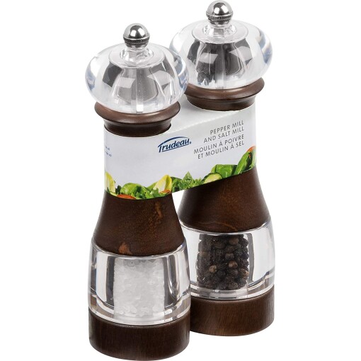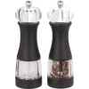 With the Dalia Pepper and Salt Mills you’ll be able to have fresh ground pepper and salt when and where you need them. The mills stand 7-inch tall and have a contemporary and stylish look and feel. The pepper mill has a high quality carbon steel grinder that will stay sharp and the salt mill has a ceramic grinder that will never rust. Cut then grind design, provides maximum flavor. Mills can be used with any dry spice, including sea salt. Mills come filled and ready to use. Acrylic and wood finish.
