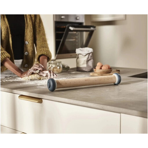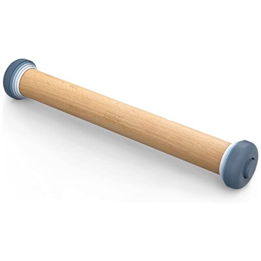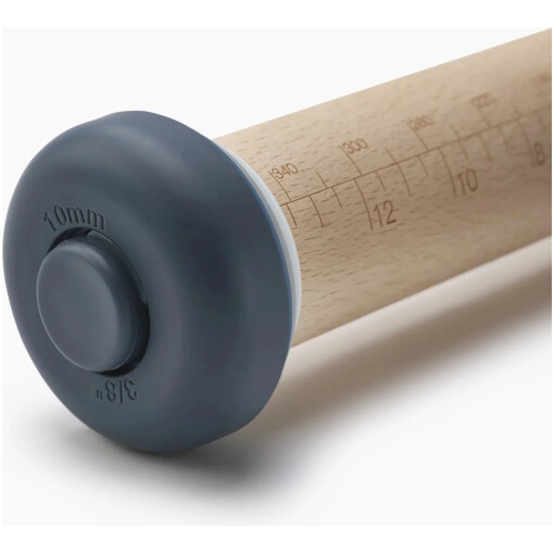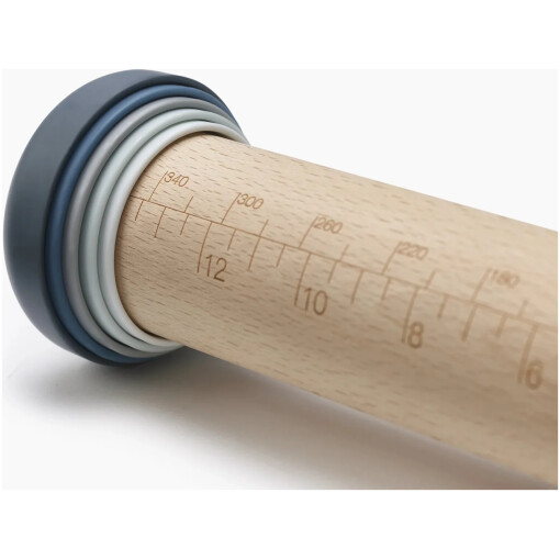 High quality beech pin with five sets of removable rings for creating different pastry thicknesses. Simply twist rings to remove and adjust. Use without rings as a conventional rolling pin. Ideal for preparing biscuit dough, pizza bases and pastry sheets.