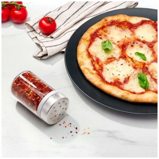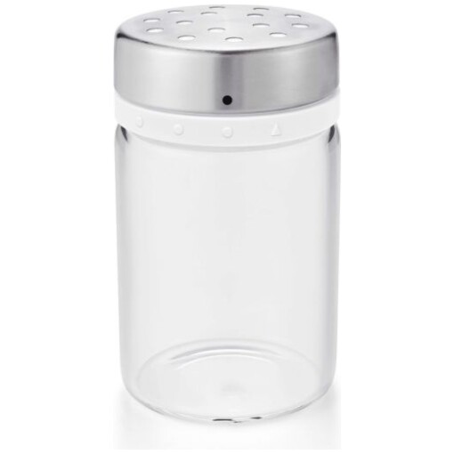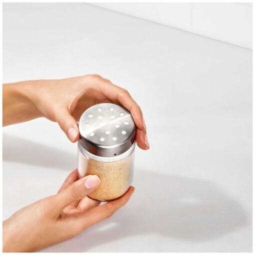This shaker does it all, from red pepper flakes on pizza to powdered sugar on pancakes. Just twist the stainless steel top to choose between large holes for coarse ingredients like herbs and spice rubs and small holes for garlic powder, cinnamon and more. Twist once more to close the shaker for freshness. The sleek design looks great on the table while dining. When you’re done eating, the stainless steel top removes for easy cleaning. The bottom of the shaker is dishwasher safe.