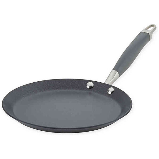 Make the perfect crepe with this handy Anolon crepe pan. The heavy-duty, hard-anodized construction provides efficient, even heat distribution. Long-lasting nonstick interior makes cleaning up effortless. The Anolon SureGrip handle is dual riveted for extra strength and designed for a comfortable grip. Oven safe up to 400 degrees F. Hand wash only.