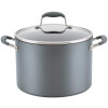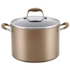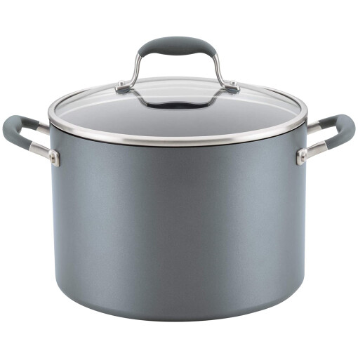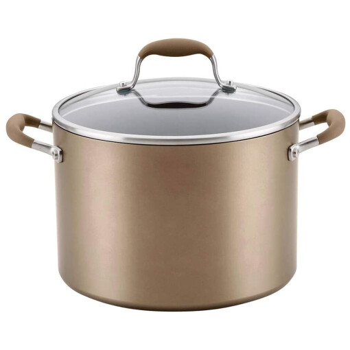 Steam, poach, and strain with convenience with the Anolon Advanced Home Hard-Anodized 10-Quart Nonstick Wide Stockpot, designed for a full range of home-cooked meals from fast and easy weeknight creations to the weekend menu everyone looks forward to. Anolon Advanced Home starts with the long lasting hard-anodized aluminum durability and even heating that Anolon is known for, and easy cleanup that will keep cooking and looking like new, even with daily use. Comfortable Anolon SureGrip handles and measuring marks on the stockpot make everyday cooking more enjoyable. Oven safe to 400°F for recipes that start on the stovetop and finish in the oven. Handles are made of silicone with stainless steel for comfortable grip. Stove Top Suitable: Electric, Gas, Glass-Ceramic. Hand wash only.