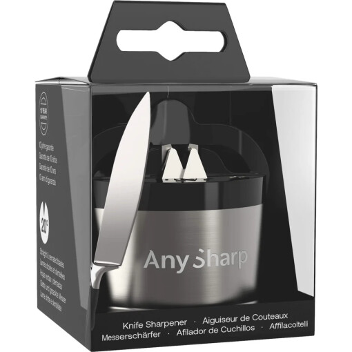 The AnySharp Pro sharpens almost any knife, from everyday kitchen blades to hardened steel and serrated knives like bread or hunting knives. With its tungsten carbide tools, it restores dull blades to their sharpest edge with ease.