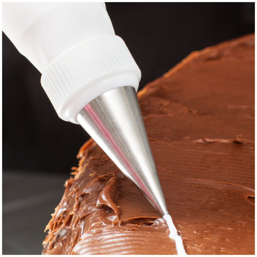 Decorate your cakes, cupcakes, cookies, and pies with this tip. Featuring a plain tip, you can create smooth-edged patterns ideal for creating a single dollop of frosting or wide swirl designs. This tip is also great for filling macarons and cannolis without making a mess.