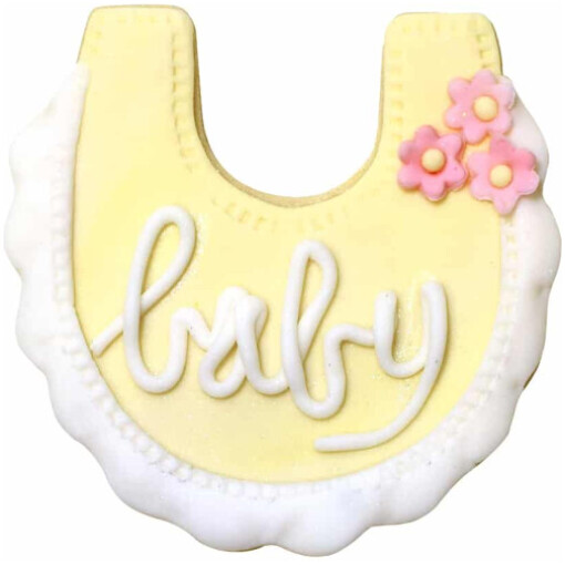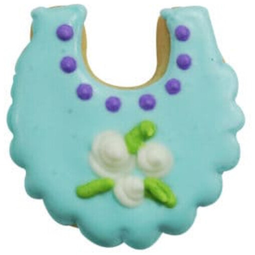 Tinplated Steel Baby Bib Cookie Cutter. Hand wash and dry thoroughly before storing.