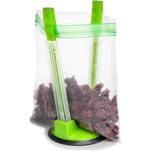 It’s like an extra set of hands! Holds baggies open for easy filling. Simply place bags under clips and fill. It’s that easy! Adjustable arms hold various size bags. The Baggy Opener folds flat for storage and works with most size storage bags.