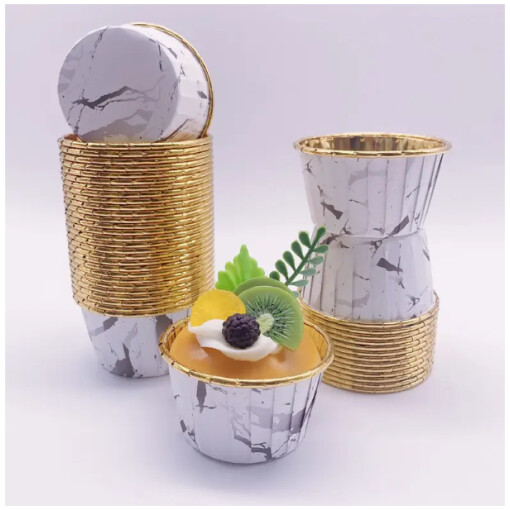 This heat-resistant baking cup, adorned with an elegant marble pattern, is an excellent option for baking a variety of treats such as cupcakes, muffins, and more.