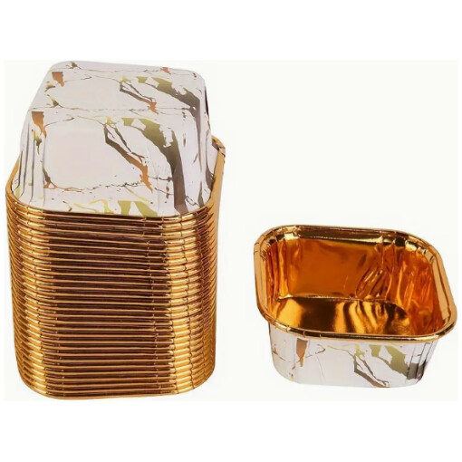 Baking Cups White & Gold Marble Square 12 pack