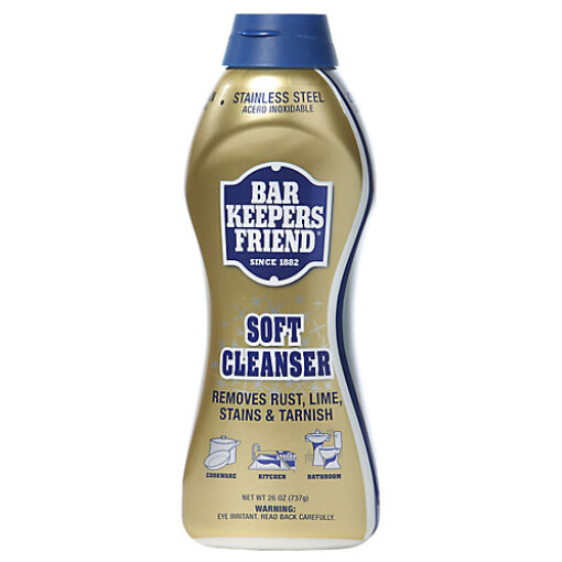 The Bar Keepers Friend 26-Ounce Liquid Cleanser will leave any surface pristine. Designed to remove rust, stains, and tarnish from your stainless steel cookware, sinks, glass, and countertops, the cleaner instantly makes your home shimmer and shine.