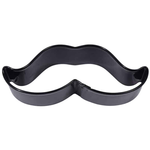 Polyresin Coated Steel Black Mustache 4″ Cookie Cutter. Hand wash and dry thoroughly before storing.