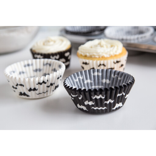 Put a smile on your guests’ faces with cupcakes baked in these fun Black and White Mustache Bake Cups. Simply place in a muffin tin and fill with your favorite batter to dress up your baked goods, so you can bake and serve tons of cupcakes.