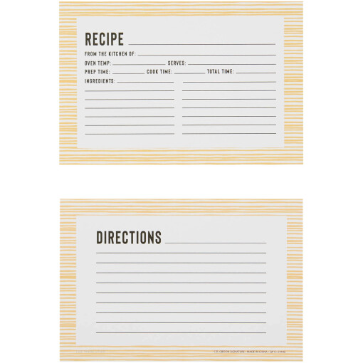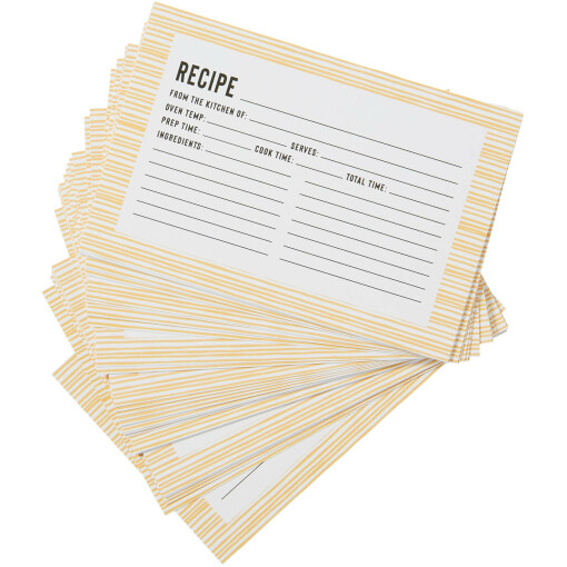 The Bloom 4″ x 6″ Recipe Cards from C.R. Gibson are the perfect size for keeping track of both simple and complex recipes easily. They come in a pack of 40 and are double-sided, meaning they have plenty of room for both ingredients and directions. The cards have a classic, vintage-style striped design in a pastel yellow, making them ideal for a wide variety of classic dish recipes. These cards are perfect for the cooking enthusiast in your life, especially if they love a good vintage aesthetic. Keep track of your recipes in style!