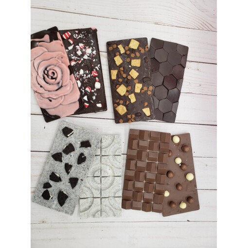 Tired of your chocolates getting stuck in your molds? Bend the silicone and pop out your chocolates easily without breaking or cracking your confections. They may also be used for jellies, cream cheese, sugar, fondant, isomalt, ice cream, soap, and more!