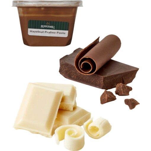 For your convenience, our high quality dark and white chocolate and praline paste is now sold as a combo for the award winning EstherO’s Gourmet Chocolate Bark.