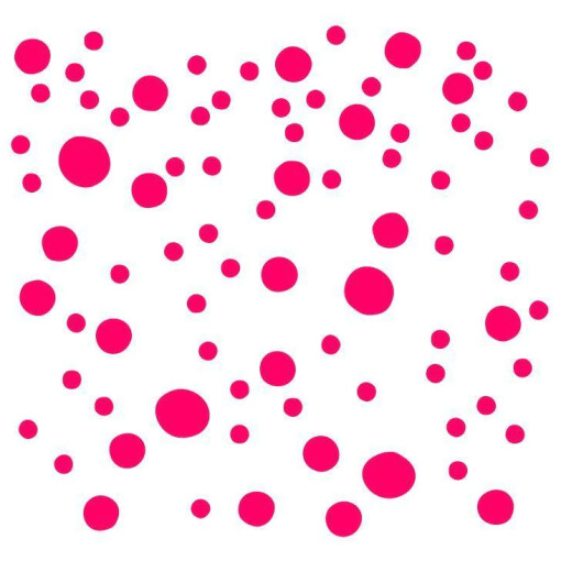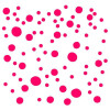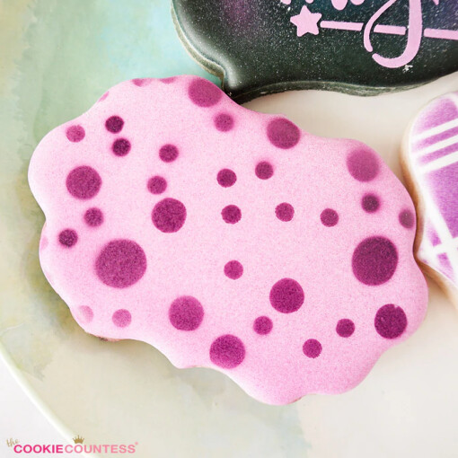 Round Confetti stencil. Bubbles and dots style pattern. Overall stencil size is approximately 5.5″ x 5.5″. PINK sections in image are the open sections. Stencils are 5mil Food Grade plastic, washable and reusable.