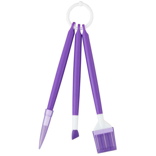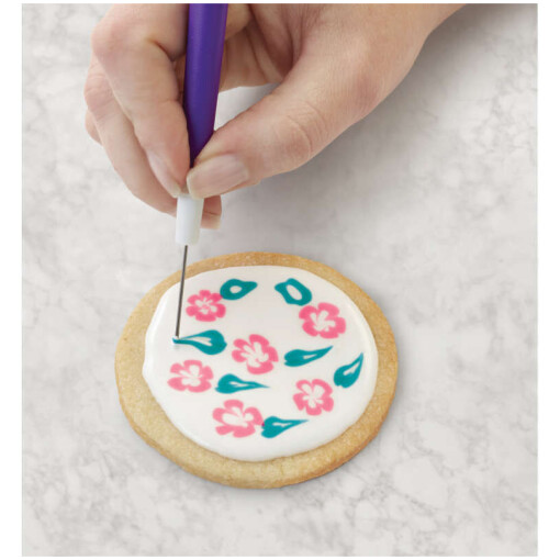 Get ready to wow everyone with your cookie decorating skills when you use this cookie decorating tool set. Create all kinds of different royal icing designs like feathering and marbling with the etching tool (scribe), pull colors on wet icing or even out edges on dry icing with the three-prong comb and create smooth precise edges with the silicone scraping tool.
